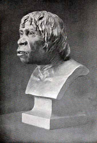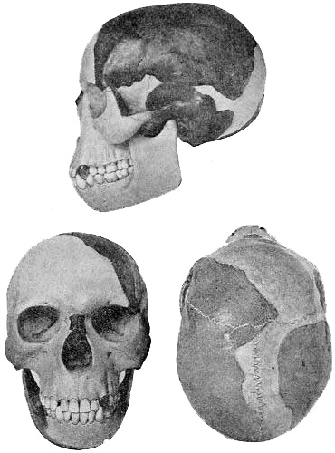 In anatomy I have especially profited by the co-operation of my former student and present university colleague Professor J. Howard McGregor, of Columbia, who has shown great anatomical as well as artistic skill in the restoration of the heads of the four races of Trinil, Piltdown, Neanderthal, and Crô-Magnon. The new reconstruction of the Piltdown head is with the aid of casts sent to me by my friend Doctor A. Smith Woodward, of the British Museum of Natural History. The problem of reconstruction of the Piltdown skull has, through the differences of interpretation by Smith Woodward, Elliot Smith, and Arthur Keith, become one of the causes célèbres of anthropology. On the placing of the fragments of the skull and jaws, which have few points[Pg xii] of contact, depends the all-important question of the size of the brain and the character of the profile of the face and jaws. In Professor McGregor's reconstruction different methods have been used from those employed by the British anatomists, and advantage has been taken of an observation of Mr. A. E. Anderson that the single canine tooth belongs in the upper and not in the lower jaw. In these models, and in all the restorations of men by Charles R. Knight under my direction, the controlling principle has been to make the restoration as human as the anatomical evidence will admit. This principle is based upon the theory for which I believe very strong grounds may be adduced, that all these races represent stages of advancing and progressive development; it has seemed to me, therefore, that in our restorations we should indicate as much alertness, intelligence, and upward tendency as possible. Such progressive expression may, in fact, be observed in the faces of the higher anthropoid apes, such as the chimpanzees and orangs, when in process of education. No doubt, our ancestors of the early Stone Age were brutal in many respects, but the representations which have been made chiefly by French and German artists of men with strong gorilla or chimpanzee characteristics are, I believe, unwarranted by the anatomical remains and are contrary to the conception which we must form of beings in the scale of rapidly ascending intelligence.