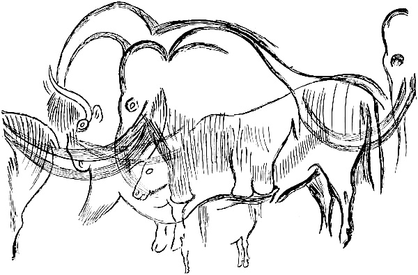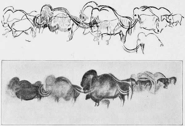 [AY] Only a few drawings from this cavern have as yet been published, such as the famous mammoth of Combarelles; the entire work is in the hands of Breuil.