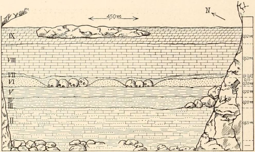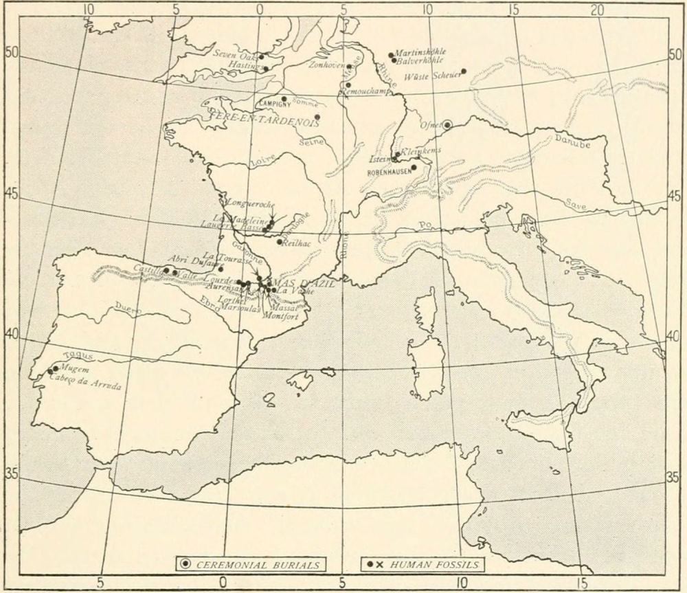 [AW] This custom is observed again in Azilian times in the burials at Ofnet on the Danube (see page 475).