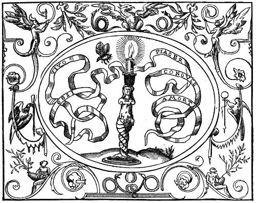 129. To the device of the Sirens, Camerarius, Ex Aquatilibus (ed. 1604, leaf 64), affixes the motto, “Mortem dabit ipsa volvptas,”—Pleasure itself will give death,—and with several references to ancient authors adds the couplet,—