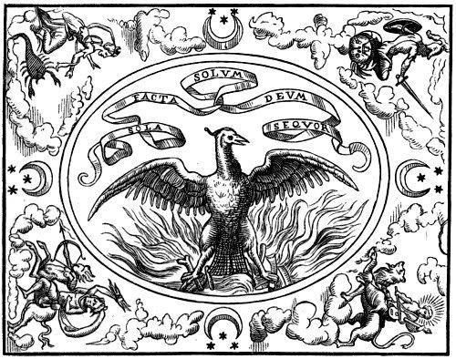 125. Paradin’s text:—“Ma Dame Bone de Sauoye mere de Ian Galeaz, Duc de Milan, se trouuant veufe feit faire vne Deuise en ses Testons d’vne Fenix au milieu d’vn feu auec ces paroles: Sola facta, solum Deum sequor. Voulant signifier que comme il n’y a au monde qu’vne Fenix, tout ainsi estant demeuree seulette, ne vouloit aymer selon le seul Dieu, pour viure eternellement.”