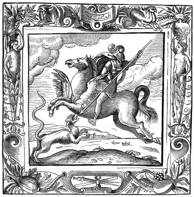 127. Or Parvus Mundus, ed. 1579, where the figure of Bacchus by Gerard de Jode has wings on the head, and a swift Pegasus by its side, just striking the earth for flight.