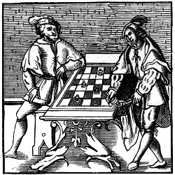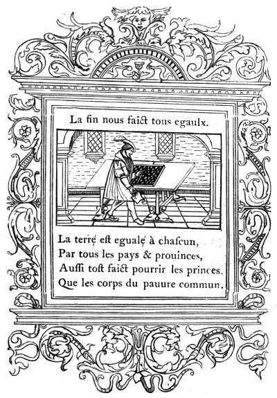 149. In the Emblems of Lebens-Batillius (4to, Francfort, 1596), human life is compared to a game with dice. The engraving by which it is illustrated represents three men at play with a backgammon-board before them.