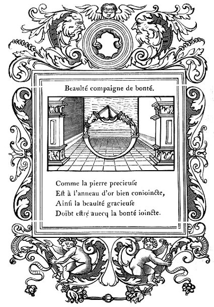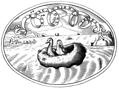 Doubtless both the woodcuts and the plates are very unequal in their execution; but to have aimed at a uniformity even of high excellence would have been to sacrifice truth to mere embellishment. It should be borne in mind what one of our objects has been,—namely, to place before the reader examples of the Emblem devices themselves, very nearly as they existed in their own day, and not to attempt the ideal perfection to which modern art rightly aspires.