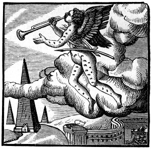 180. Can this be an allusion to Holbein’s Last Judgment and Escutcheon of Death in his Simulachres de la Mort, ed. 1538?