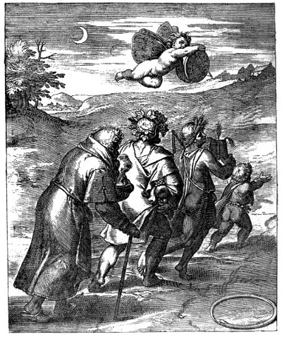 130. Shakespeare’s “goddess blind” and his representation of blind Love have their exact correspondence in the motto of Otho Vænius, “Blynd fortune blyndeth loue;” which is preceded by Cicero’s declaration, “Non solùm ipsa fortuna cæca est: sed etiam plerumque cæcos efficit quos complexa est: adeò vt spernant amores veteres, ac indulgeant nouis,”—