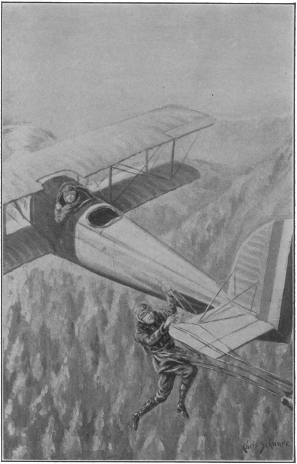 Bill did not take much time to consider what was the proper thing to do. He was in a position now from which he could stoop down and give that fan a kick and break the safety wire. It was doubtful if he could ever get there again, judging from the erratic way in which the plan had traveled through the air during the past few moments.