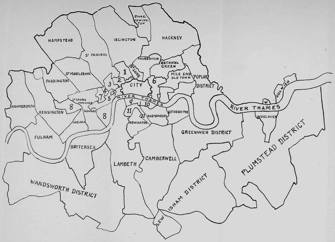 SKETCH MAP OF LOCAL DISTRICTS IN LONDON.