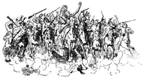Well might he be excited. Over the hills, from the west and north, along the river on the opposite bank—everywhere, and in every direction, they made their appearance. Finely mounted, in full war paint, their long scalp-locks braided with eagles' feathers, and with all the paraphernalia of a barbarous war party, with wild and exultant shouts, on they came.