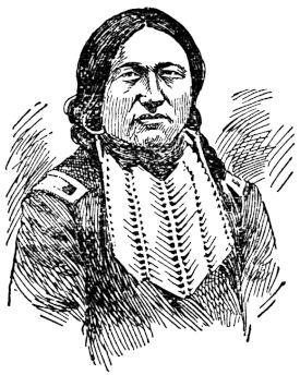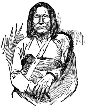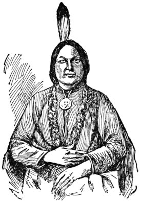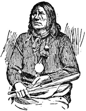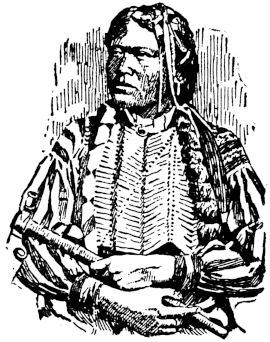 In-ne-cose sat in the center of his counselors, on a magnificently embroidered buffalo robe, smoking his great pipe trimmed with eagle-feathers, as stoical as an Egyptian mummy, excepting that around his mouth there played a smile of devilish import.