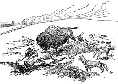 Shortly after sunrise, one morning in June, 1828, a young white man was reclining idly on[241] one of the grassy knolls overlooking the village, the great river, and the vast prairie stretching westwardly from its bank. He was intently watching certain movements in the town, where the warriors were preparing for a grand hunt. In the distance, the buffalo could be seen grazing in immense herds, whose presence was the cause of the commotion among the Indians. Soon he saw hundreds of warriors, armed with bows, their quivers filled with arrows, emerge from the shadow of their lodges, and in a long line ride out toward the unsuspecting animals so peacefully feeding. The old men and squaws alone remained in the village, and they were gathered in anxious groups, applauding the husbands, sons and lovers as they went proudly forth to battle for that subsistence which was their only dependence when the snows of winter filled the now sunny valley.