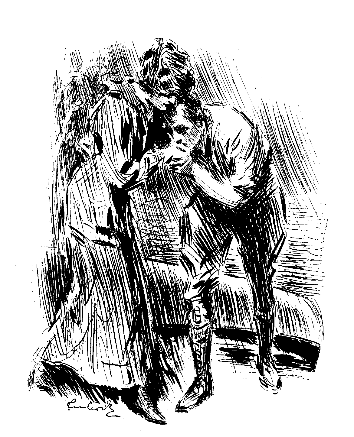 She came back to him again and settled down in his arms.