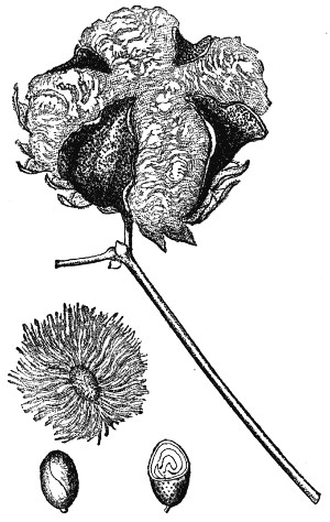 I venture to believe that the reader who will kindly follow my argument (p. 42, et seq.) will agree with me that the rumour which spread from Western Asia all over Europe, and was a subject of discussion by learned men during many centuries, of the existence of “a tree bearing fruit, or seed-pods, which when they ripened and burst open were seen to contain little lambs, of whose soft white fleeces Eastern people wove material for their clothing,” was a plant of far higher importance to mankind than the paltry toy animals made by the Chinese from the root of a fern, of which gew-gaws only four specimens are known to have been brought to this country. It seems to me clear and indisputable that the rumour referred to the cotton-pod, and originated in the first introduction of cotton and the fabrics woven from it into Eastern Europe.