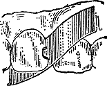 The following facts were learned from Dr. Corydon Palmer: E. E. Smith, who had been a student of John and William Birkey, in Philadelphia, came to Warren, Ohio, in 1839, and among other things made the first gold plate in that part of the country. In operating on the anterior teeth, he first passed a separating file between them, excavated the cavity, and prepared the foil, tin or gold, in tapes which were cut transversely, every eighth of an inch, about three-quarters[12] of the way across. Fig. 1 shows the size of tape and the manner of cutting. With an instrument (Fig. 2) he drew the foil in from the labial surface, using such portion of the tape as desired.