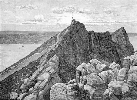 As we come to Europa Point we are at the very foot of the Rock, and must stop to look upward; for above us rises the highest point of Gibraltar, O'Hara's Tower, which, as it is also nearest to the sea, is the one that first catches the eye of the mariner sailing up or down the Mediterranean. Here the old Phœnicians sacrificed to Hercules, as they were approaching what was to them the end of the habitable globe; and here, in later ages, a lamp was always hung before the shrine of the Virgin, and the devout sailor crossed himself and repeated his Ave Maria as he floated by.