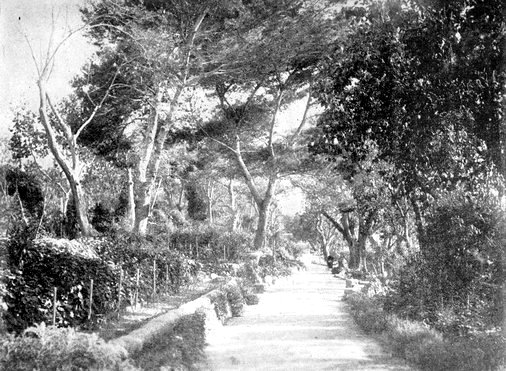 This end of Gibraltar is a great resort of the people in the summer time, and furnishes the only drive, unless they go out of the gates and crossing the Neutral Ground enter the Spanish lines. Here they are wholly within the Peninsula, and yet in a space so limited is a drive such as one might find along the Riviera. The road is beautifully kept, and winds in and out among the rocks, in one place crossing a deep gorge, which makes you almost dizzy as you look over the parapet of the little bridge which spans it. At each turn you get some new glimpse of the sea, and whenever you raise your eyes to look across the Strait, there is the long line of the African Coast. This is the favorite drive of officers and ladies on summer afternoons, since here they can escape the blistering sun, and get into the cool shadows.