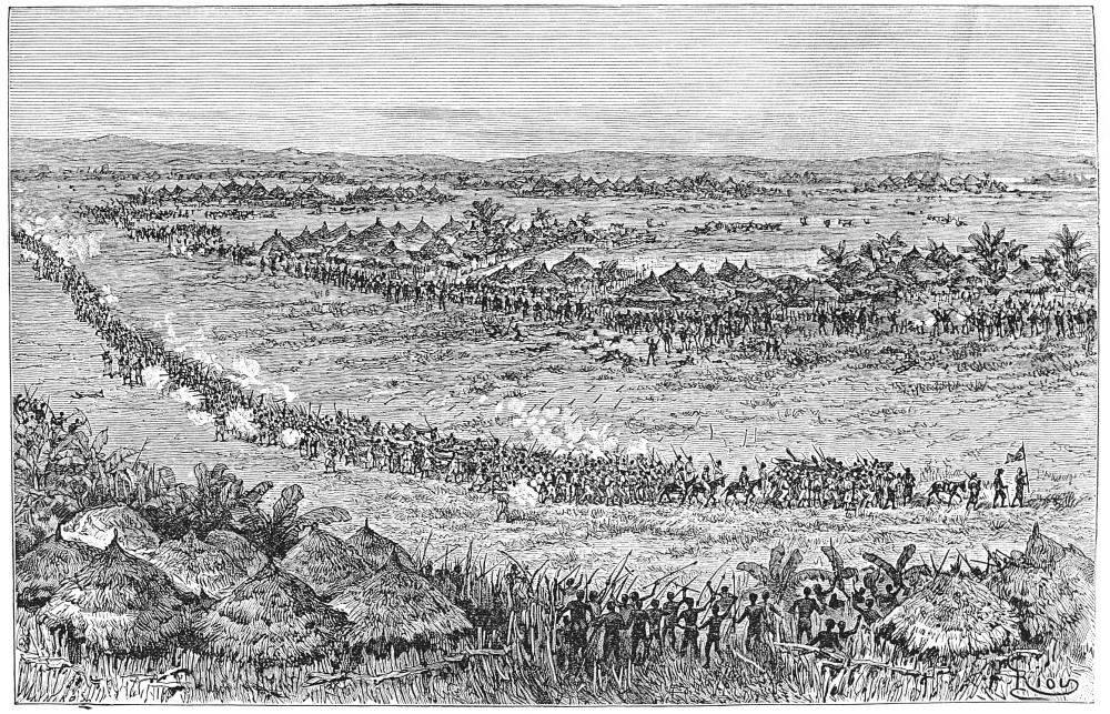 [33] By a letter dated November 21st, 1889, written from Bukumbi, south end of Lake Victoria, I learn from Mr. C. Stokes that he reached Mwanga’s island safely. On his arrival he found that, though in a tolerably favourable position, food was scarce, and sickness was troubling the camp. He resolved to make a bold advance to the capital, and for this purpose requested the chief of the Christians in Uddu to advance by land. On reaching within one day’s march of the capital the Christians were attacked and in great danger, but Mr. Stokes, Mwanga, and his faithful followers hurried to their aid, and Karema and the Mohammedan party were defeated. On the 4th of October another battle took place close to the capital Rubaga, whereat Karema and his Arab confederates were completely routed, and on the 5th, Mwanga and his white friend entered the capital. Karema and his Arab auxiliaries attempted to take refuge in Unyoro, but Kabba Rega, the King of Unyoro, refused to admit him unless he parted from his Arab friends. He was therefore compelled to seize a position near the northern frontier of Uganda, where he remained at last accounts with 500 guns. So ends this romantic history for the time. Mwanga is again on his throne, and the English and French missionaries are again established in Uganda.