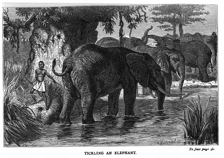 “What I have spoken is God’s truth,” said Khamis bin Abdullah, “and Allah knows it. But there are many more wonderful countries than Marungu and Ufipa. Rua, several days further toward the setting of the sun, is a great country, and few Arabs have been there yet. Sayd, the son of Habib, has been to Rua, and much further; he has been across to the sea of the setting sun, and has married a wife from among the white people who live at San Paul de Loanda. Sayd is so great a traveller, I should fear to say what land he has not seen. Mashallah! Sayd, I believe, has seen all lands and all peoples. He says that ivory is used in Rua by the Pagans as we use wooden stanchions or posts to support the eaves of our houses, that ivory holds their huts up, and he believes great stores of it are known to the savages, where some of their great hunters have killed a large number of elephants, and have left the ivory to rot, not knowing how valuable it is, or where a great herd of elephants have perished from thirst or disease. However the knowledge came to these people, or whatever the cause which left such a store of ivory in that country, Sayd, the son of Habib, is certain that there is an unlimited quantity of this precious stuff in Rua, and that we can make ourselves richer than Prince Majid, our Sultan, if we go in time, before the report is common among the Arabs. What money I have made this time on my last trip is so small, compared to what I might have realised, that I mean to try my fortune again in Africa shortly, Inshallah!—please God! I intend going to Rua, and if thou, Amer bin Osman, hast a mind to accompany me, I promise thee that thou wilt not repent it.”