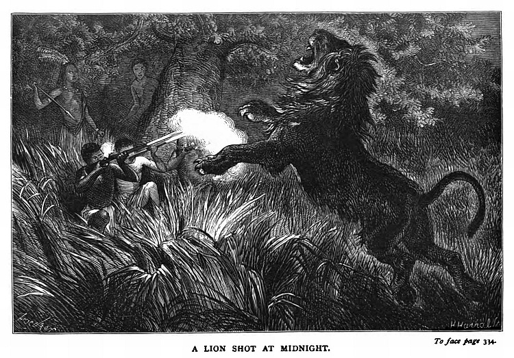 Continuing their march, ten days more brought them to the Makata Plain, and on the eighth day after leaving Usagara they camped near Simbamwenni, or the “Lion Lord’s” city, which both Selim and Abdullah remembered as the scene where Niani had a disagreeable incident with Isa. Poor Isa! he is dead.