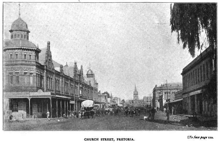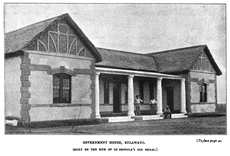 I think I have said enough to illustrate the position in which Bulawayo has been placed by the arrival of the railway. At present its broad avenues and streets give one an idea that it has made too much of itself. When the avenues are about 90 feet wide and the streets 130 feet wide, naturally the corrugated-iron one-storeyed cottages and the one-storeyed brick buildings appear very diminutive; and the truth is that, were the streets of proportionate width to the height of the buildings, the town would appear very small. The plain upon which it stands gives an idea of infinity that renders poor one-storeyed Bulawayo very finite-looking indeed. The town, however, has laid itself out for future greatness, and the designers of it have been wise. Winnipeg, in Manitoba, which Bulawayo reminds me of by the surrounding plain, was laid out on just such a spacious plan; but ten years later six-storeyed buildings usurped the place of the isolated iron hut and cottage, and the streets were seen to be no whit too wide. Ten years hence Bulawayo will aspire higher towards the sky, and when the electric trams run in double lines between rows of shade trees, there will be no sense of disproportion between buildings and streets. On the walls of the Stock Exchange I found hanging plans and elevations of the brick and stone buildings already contracted for. They are not to be very lofty, none over two storeys, but architecturally they are most attractive. These new buildings will, perhaps, stand for about five years, for, according to my experience, it is not until the tenth year that the double storey becomes the fashion. At the twentieth year begins the triple storey; at thirty years the fourth storey begins to appear.