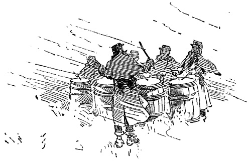 I was obliged to make an early start, for the train left General Warren's headquarters about four o'clock in the morning. When I reached the station, I found on the platform a huge pile of boxes and barrels, nearly as high as a house, which I was informed was the Fifth Corps' share of a grand dinner which the people of New York had just sent 309 down to the Army of the Potomac. Before the train arrived I had seen enough to cause me to fear that a very small portion of the contents of those boxes and barrels would ever find its way into the haversack of a drummer-boy. For I had not been contemplating the pile with a wistful eye very long, before a certain sergeant came out of a neighboring tent with a lantern in his hand, followed by two darkies, one of whom carried an axe.