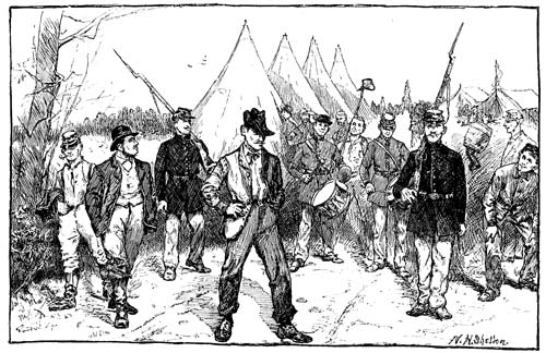 No sooner were we well down the gangplank than the crowd of apple and pie women that stood on the wharf made quick sales and large profits. Then we marched away to a "soldiers' retreat" and were fed. Fed! We never tasted so grand a supper as that before or since—"salt horse," dry bread 326 and coffee! The darkies that carried around the great cans of the latter were kept pretty busy for a while, I can tell you; and they must have thought: