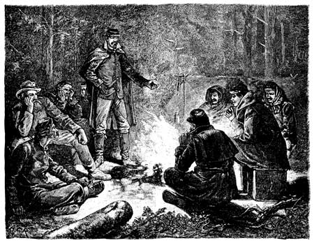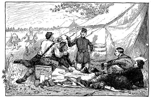 "Well, boys, I know what the war-fever is like. I had a touch of it last winter when the Fifty-first boys went off, and I came very near going along with them, too. But my brothers, Charlie and Sam, both wanted to go, and I declared that if they went I'd go 21 too; and mother took it so much to heart that we all had to give it up. Charlie and Sam came near joining a cavalry company some months ago, and I shouldn't wonder much if they did get off one of these days; but as for myself, I guess I'll have to stay at home and take care of the old folks."