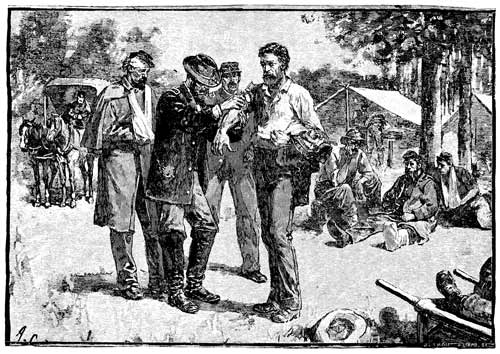 "You see," continued my messmate, "the New York people meant well, but they have no idea how big a thing this Army of the Potomac is, and they did not stop to consider how many toll-gates their dinner would have to pass in order to reach us. By the time corps, division, brigade, regimental, and company headquarters had successively inspected and taken toll out of the boxes and barrels, there was precious little left for the high private in the rear rank."