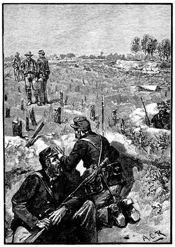 Out, therefore, I went, over the breastworks to the picket-line, where the rifles were popping away at intervals. I searched among trees and behind bushes, and called and called, but all in vain. Then the retreat was sounded, and we were drawn off the field, and marched back to the fortifications which we had left the day before.