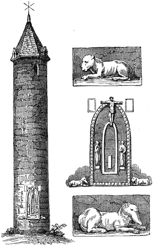It may, we think, be said without injustice, that when dealing with that part of the question which related to the uses of the Round Towers, O’Brien was more successful in upsetting the theories of other people than in establishing his own. The purposes for which preceding antiquarians had severally claimed that the towers were built are almost endless; but Dr. Petrie has summarised the most prominent of them as follows:[24]—(1) Fire-temples; (2) places from[Pg xxxiii] which to proclaim the Druidical festivals; (3) Gnomons, or astronomical observatories; (4) Phallic emblems, or Buddhist temples; (5) Anchorite towers, or Stylite columns; (6) Penitential prisons; (7) Belfries; (8) Keeps, or Monastic Castles; (9) Beacons and Watch-towers. Both he and O’Brien agree in holding that the Round Towers were not appropriated to any one of these purposes exclusively, though they might have been used for two or more of them. It is with regard to the selection of these latter that the authors differ—Petrie adopting views (7), (8), (9); O’Brien, view (3), but with much reservation; view (4) absolutely, and adding another view of his own, namely, that they were sometimes devoted to memorial or sepulchral uses. It has been mentioned already that Moore charged him with plagiarism in respect of his adoption of view (4); but, like other charges from the same quarter, the assertion rests upon unstable grounds. O’Brien made no secret of the fact that on many points he shared the views of General Vallancey, for whom he invariably expresses respect, and even admiration; but he is careful to explain that, where their judgments happen to coincide, it is for very different reasons. “I wish it to be emphatically laid down,” he says in one place, “that I do not tread in General Vallancey’s footsteps.... I have taken the liberty to chalk out my own road”; and, in another, “Though his perseverance had rendered him (Vallancey) the best Irishian of his age, and of many ages before him, yet he has committed innumerable blunders.” This goes to show that he was unlikely to adopt any theory merely because Vallancey held it; and to have arrived at the same conclusion by a wholly different road was surely not “plagiarism.” What is more, a reference to the published works of General Vallancey,[25] or even to[Pg xxxiv] such extracts from them as may be found in Dr. Petrie’s book, will, if we are not mistaken, give rise to some doubt of that author having ever distinctly maintained the Eastern, or pagan, origin of the Round Towers. His views are, however, so nebulous and shifting, that it is difficult to say whether he committed himself to any positive theory on the subject. Starting with the conjecture that the Round Towers may have been the work of “Phœnicians or Indo-Scythians,” he is soon found attributing them to certain “African sea-champions,” who, in his opinion, were the “Pheni,” being likewise, as he goes on to inform us, “a Pelasgic tribe.” Next, he declares that it was the Fomorians who, having conquered Ireland, “taught the inhabitants to build Round Towers”; but he afterwards seems to discard this theory in favour of a “Danish” origin, and ends, to all appearance, by resigning himself to the notion that they may, after all, have been built by “Christian” settlers. Nor are his speculations as to the purpose of those structures less varied and conflicting. At one time he maintains that they were undoubtedly “fire-temples”; at another, that they were “belfries”; and yet again, that they were “beacons.” But—what is especially remarkable in connection with the charge of plagiarism—he never, so far as we can discover, attributes to them a “phallic” significance. Upon the whole, then, it seems rather unreasonable to accuse anybody of having borrowed theories from an author who practically had none; and the probability is that, without having read General Vallancey’s works, Moore had, from hearsay, formed a vague general notion of their contents, which notion he, in the capacity of an irresponsible and not over-scrupulous reviewer, ventured to utilise for paying off old scores. Be that as it may, we are not prepared to urge that, upon the evidence, O’Brien’s theory as to the phallic emblemism of the Round[Pg xxxv] Towers—whether he borrowed it from Vallancey or not[26]—absolutely deserves credence. Like his ascription of an Eastern origin to the Tuath-de-danaans, it is one of those things which, so far as we can see, are incapable of proof. Still, it cannot be said that there is any inherent impossibility in the notion; in fact, assuming that the Round Towers were built by an Eastern colony, there is much in its favour. For, as all who are acquainted with our Indian Empire must be well aware, phallic symbols are there regarded with a veneration which in its character is entirely free from associations that appear to be inseparable from them elsewhere. The East and West have taken different views as to the light in which the physical agency by which divine creative power has chosen to perpetuate life should be regarded; and to the Hindoo mind, for instance, there is nothing inconsistent with the highest moral purity in worshipping an idealised representation of the generative principle. A similar belief, on O’Brien’s showing, prevailed in ancient Persia,—indeed, but for its existence there, the Tuath-de-danaans’ immigration into Ireland could hardly have taken place,—so that colonisers from that country, if any such colonisation ever took place, were likely to have introduced corresponding typical representations wherever they settled. Hence the theory of the Eastern origin of the Round Towers and that of their phallic significance are mutually interdependent. Further than this it is useless to go. The probability of either theory is a matter that, if we are not mistaken, most readers will determine for themselves, without 