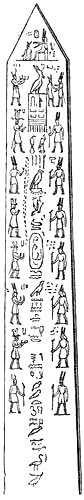“L’obélisque que les Phéniciens dédièrent au Soleil dont le sommet sphérique et la matière étoient fort différens des obélisques d’Egypte” (Ammian. Marcel.).