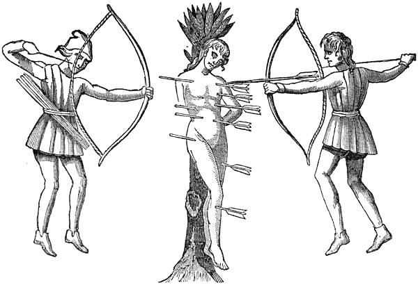 [615] “You may read in Lucian, in that sweet dialogue, which is entitled, Toxaris; or, of Friendship, that the common oath of the Scythians was by the sword, and by the fire, for that they accounted those two speciall divine powers, which should worke vengeance on the perjurers. So doe the Irish at this day, when they goe to battaile, say certaine prayers or charmes to their swords, making a crosse therewith upon the earth, and thrusting the points of their blades into the ground, thinking thereby to have the better successe here in fight. Also they use commonly to swear by their swords” (Spenser).
