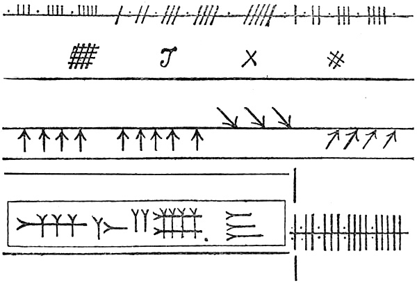 The Origin of the Round Towers (the first branch of the question proposed by the Royal Irish Academy) is really only part of a much wider problem which had long engaged the attention of earnest, capable, and industrious archæologists, with whose names the reader of this work[Pg xxvi] is likely to become only too familiar. The Round Towers are merely one class of more or less elaborate architectural or monumental remains, scattered all over Ireland, and bearing unmistakable signs of a very remote antiquity.[16] That these remains are inseparably connected in time and origin, seems to be proved by the fact that no writer upon the subject of the Round Towers had hitherto been able to treat of the latter exclusively, without taking into consideration the “crosses” or “temples,” or other subdivisions of the whole, and that neither Dr. Petrie nor his rival claimed exemption from the same necessity. A great portion of their respective works on the Round Towers is devoted, for instance, to a consideration of other antiquities; and what is perhaps the most valuable part of O’Brien’s,—namely, that upon which his assumption of a pagan origin chiefly rests,—is the result of investigation into the nature of that symbolism for which the sculptured crosses are so remarkable. It seemed, in fact, impossible for those who studied the subject carefully to resist the conclusion that all these remains belong to a period when Ireland was inhabited by a race which differed in many respects from the Irish of a later date. In Dr. Petrie’s opinion, that race consisted of the early Christian missionaries and their proselytes; in O’Brien’s, it belonged to an era far antecedent to Christianity itself; and so far, he is at one with the leading authorities who preceded him. Limiting his statement to the Round Towers, Dr. Petrie informs us[17] that, up to the time at which he undertook to decide the matter, two theories prevailed as to the “origin” of these structures: (1) That they were erected by the Danes; (2) that they were of Phœnician origin. But O’Brien discards the Danes altogether, and only allows a very subordinate part indeed to the Phœnicians, namely, that of having, as sea-carriers, assisted to convey the Tuath-de-danaans to Ireland. For[Pg xxvii] the grounds upon which Dr. Petrie attributes an exclusively Christian origin to the Round Towers inquirers must be referred to the body of his work, where they will find it most ingeniously, if not quite ingenuously, argued at much length that these structures were erected between the fifth and thirteenth centuries of our era by Christian founders. An outline of his rival’s argument to the contrary is given in the annexed “Synopsis.” The difference between the respective methods of the two theorists is very marked, and here the advantage does not rest with O’Brien. Petrie is calm, precise, authoritative; O’Brien fervid, rambling, and passionately expostulative. That the former has failed to prove his case, and that the latter has to some extent succeeded in doing so, may, or may not, be the fact; but it must be admitted that, if O’Brien was the more successful, he was not the more dexterous combatant. It has been frequently, and perhaps not without justice, remarked that “Irishmen have a way of blundering upon the truth”; and from the eccentric fashion in which he sets about proving his contention, some may argue that O’Brien’s success merely affords an instance of this national peculiarity. But it would be hardly fair to do so in the case of an author who is acknowledged to have prepared himself for his task by careful study of the authorities bearing upon its subject, and whose “discovery,” as he calls it, is expressly founded on the results of that preparation. In this latter respect he presents a marked contrast to his somewhat dictatorial rival, who is wont to treat the exercise of private judgment by those who happen to differ from himself as a species of lèse-majesté.[18] On the other hand,[Pg xxviii] O’Brien is always imploring the reader to follow his argument step by step. “Here,” he ever seems to be urging, “are the plain, unvarnished facts; here, the incontestable authorities; with these staring you in the face, surely you cannot think of denying that such and such an inference is unavoidable?” His reasons may not be always of the best; but, such as they are, he gives them freely. Of the two methods, the public, who are usually impressed by self-assertion, preferred the former; and “Dr. Petrie’s epoch-making book” was by general consent allowed to have “settled the question of the Round Towers for ever.” This comforting belief remained undisturbed for more than a quarter of a century, when, in the year 1867, a book appeared which challenged its infallibility. The author, a Mr. Marcus Keane, seems to have started upon an investigation of Irish ruins from sheer curiosity, and with a dispassionate intention to see and judge for himself. He was certainly not actuated by any wish to decry the merits of Petrie’s work, to which he confesses his great obligations, and which he appears to have taken at first as his guide. But, having carefully examined bit by bit the ancient architecture still remaining in most of the Irish counties, and having tested Petrie’s statements by personal investigation on the spot, he reluctantly confessed that he had lost faith in the latter. “After much consideration,” he declares,[19] “I have been forced to the conclusion ... that the generally received theory is[Pg xxix] not supported by sufficient evidence. My conviction of the heathen origin of these ruins has been strengthened in proportion to the increased knowledge which I have acquired by examination of the ruins themselves.... Not only the Round Towers, but also the crosses and stone-roofed churches are entirely of heathen origin.” Further, on all essential points he found himself in 