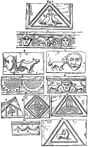 [578] See p. 36. I must not omit to mention that the Tuath-de-danaan cross at Armagh, noticed at p. 359, was pulled down some time back, to prevent the squabbles between the Catholics and the Orangemen, neither of whom had any inheritance therein!
