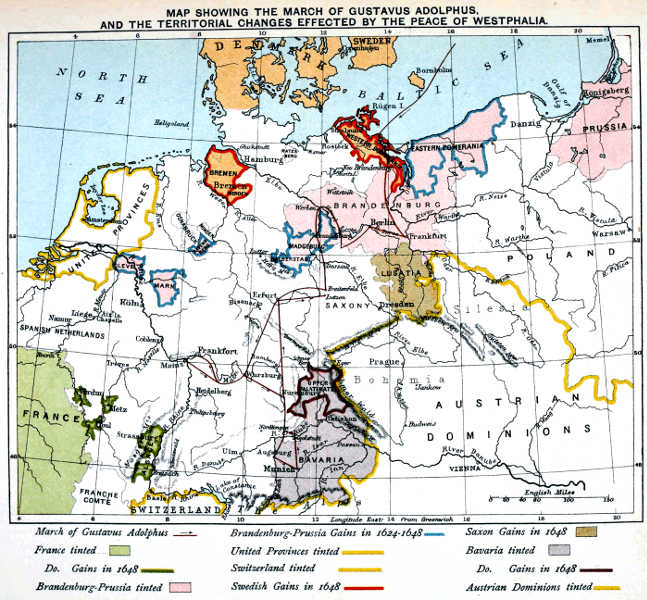 | 2. | Germany according to the peace of Westphalia, showing the march of Gustavus Adolphus, 1630–1632, | To face page 124 |
