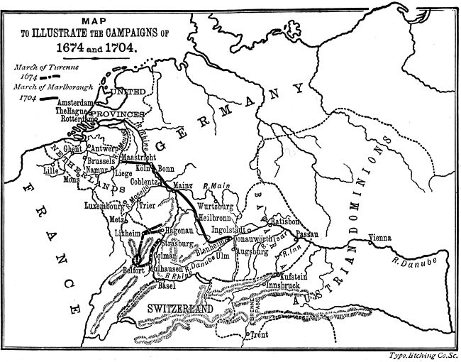| 3. | The countries of the Upper Rhine and Danube, showing the march of Turenne, 1675, and of Marlborough, 1704, | 241 |