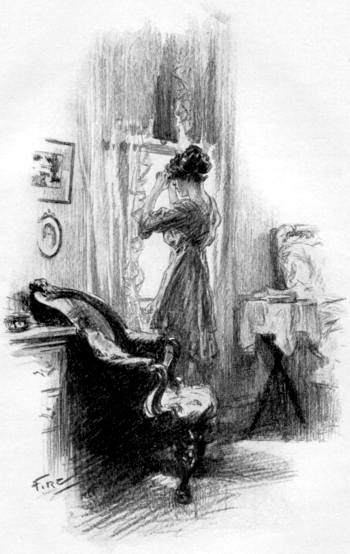 In the sitting-room Mary was similarly occupied. Though she was going back to the Flowers' so soon, she took off her hat. Having done so, she stood before the mantel-mirror, fluffing up her hair a little, where the hat had pressed it down. It is the immemorial fashion of women: a characteristic position, and so an engaging one. Delicately the upraised arms defined the lines of a graceful figure.