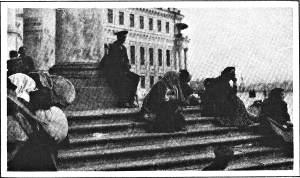 Moussorgsky went to Petrograd, and he and five friends formed themselves into an intellectual circle. He soon, however, began to feel the pinch of poverty and was obliged to do some work of translation. Later he even took a small government position. His mother died in 1865, and he wrote a song at the time which is now regarded as one of his finest works. Toward the middle of this year he was once more attacked by his nervous trouble. It was necessary for him to give up his position and to go to live in the country. He improved gradually, and during the next two years he wrote some songs which later attracted some attention. Most of the year 1868 was spent in the country. In the fall of this year he returned to Petrograd. He secured another position, this one in the Ministry of the Interior. This left him with some leisure, which he employed with his music. About this time he began to work on the music of his opera, “Boris Godounov,” based on the work of the dramatist Pushkin. This was first produced in Petrograd on January 24, 1874. Shortly after he began to work on “Khovantchina,” another opera, which had its first complete public performance in 1885 at Petrograd.