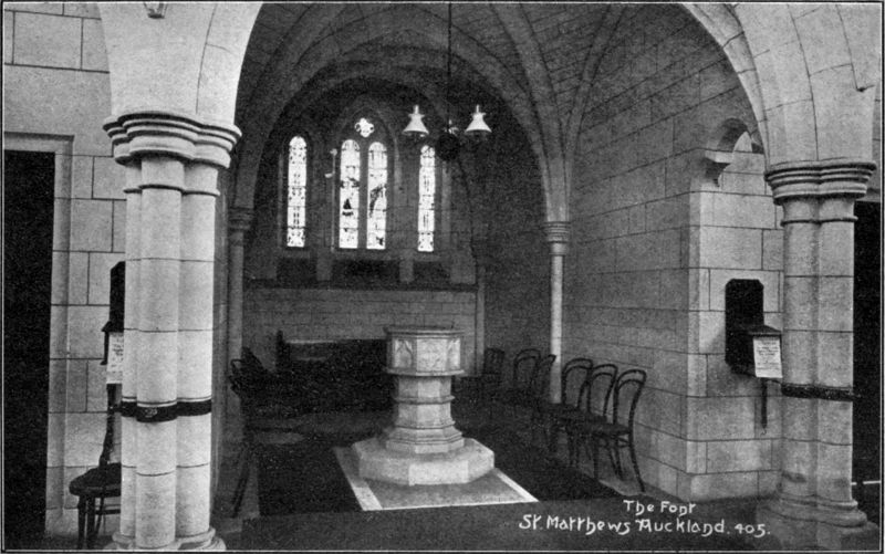 [11] It is a matter for regret that the scene of this first episcopal consecration in New Zealand can no longer be pointed out. The church stood, opposite the Museum, on government land which now forms part of the grounds surrounding the Parliament buildings. But portions of the structure were removed to the Bolton-street cemetery, and still form part of the mortuary chapel there.