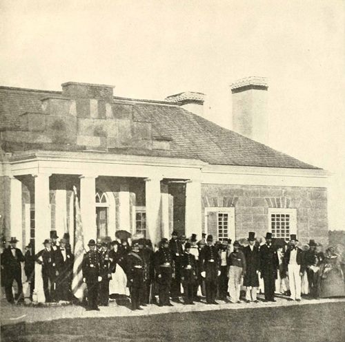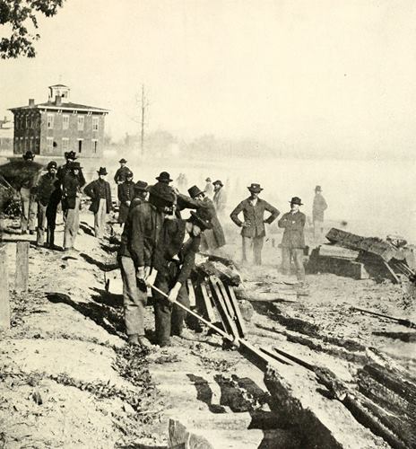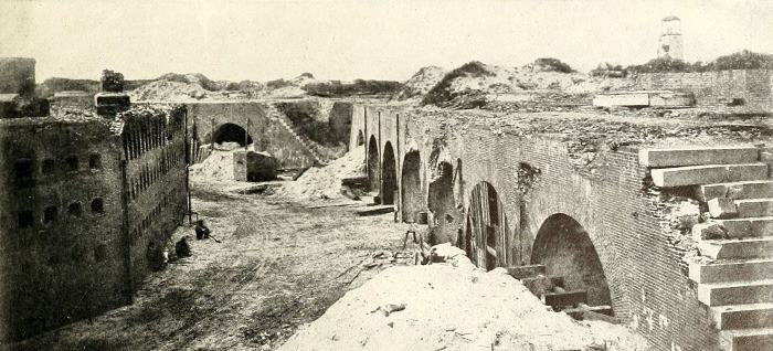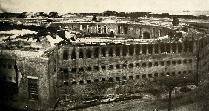 Wade Hampton (the tallest figure) and other leading South Carolinians inspecting the effects of the cannonading that had forced Major Anderson to evacuate, and had precipitated the mightiest conflict of modern times—two days before.
