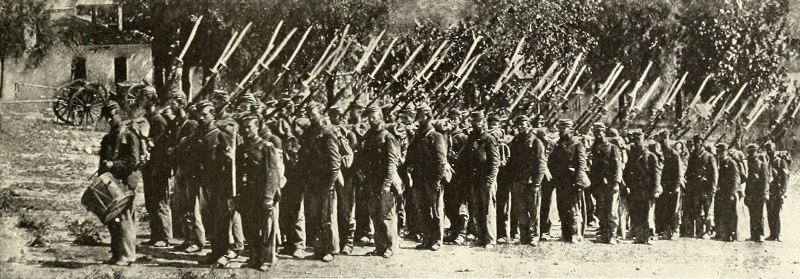 Opposite McDowell, at Manassas Junction, about thirty miles from Washington, lay a Confederate army under Brigadier-General Beauregard who, three months before, had won the homage of the South by reducing Fort Sumter. Opposed to Patterson in the Shenandoah valley was Joseph E. Johnston with a force of nine thousand men. The plans of the President and General Scott were to send McDowell against Beauregard, while Patterson was to detain Johnston in the Valley and prevent him from joining Beauregard. It was confidently believed that, if the two Confederate forces could be kept apart, the “Grand Army” could win a signal victory over the force at Manassas; and on July 16th, with waving banners and lively hopes of victory, amid the cheers of the multitude, it moved out from the banks of the Potomac toward the interior of Virginia. It was a motley crowd, dressed in the varied uniforms of the different State militias. The best disciplined troops were those of the regular army, represented by infantry, cavalry, and artillery. Even the navy was drawn upon and a battalion of marines was included in the Union forces. In addition to the regulars were volunteers from all the New England States, from New York and Pennsylvania and from Ohio, Michigan, and Minnesota, organizations which, in answer to the President’s call for troops, had volunteered for three months’ service. Many were boys in their teens with the fresh glow of youth on their cheeks, wholly ignorant of the exhilaration, the fear, the horrors of the battle-field. Onward through the Virginia plains and uplands they marched to the strains of martial music. Unused to the rigid discipline of war, many of the men would drop out of line to gather[Pg 13] berries or tempting fruits along the roadside, or to refill their canteens at every fresh stream of water, and frequent halts were necessary to allow the stragglers to regain their lines.