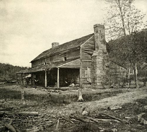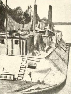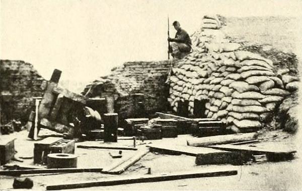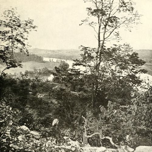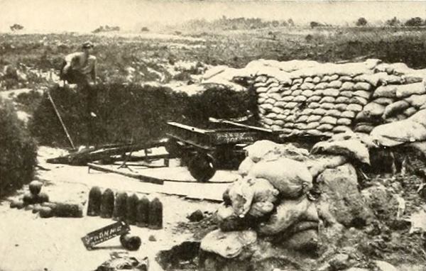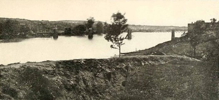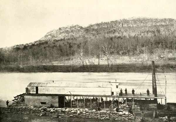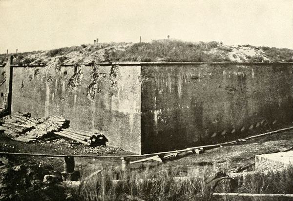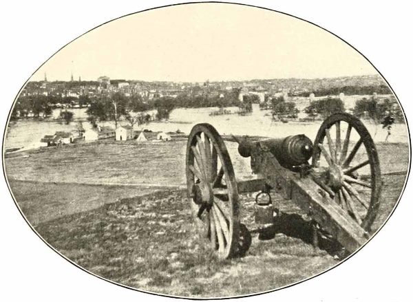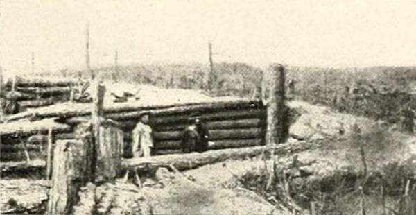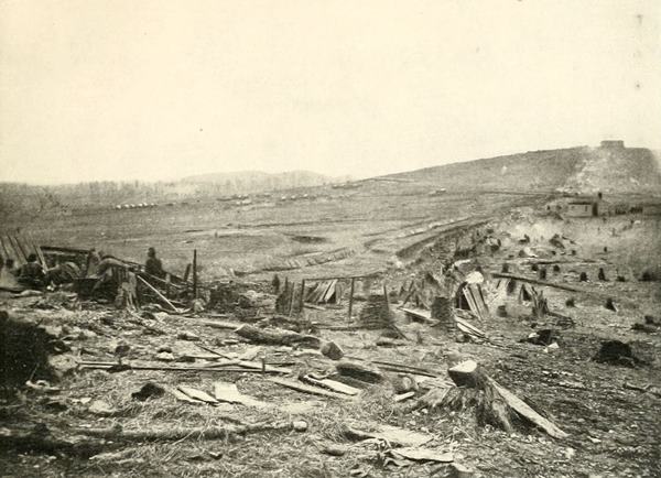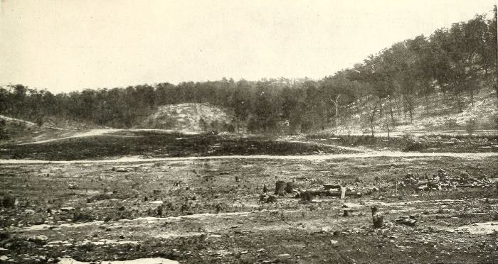 It was Hood’s hope that, when he had advanced his line to the left of the position shown in this photograph, he might catch a weak spot in Thomas’ forces. But Thomas had no weak spots. From the casemate, armored with railroad iron, shown here, the hills might be easily seen on which the Confederate center and left were posted at the opening of the great battle of Nashville.