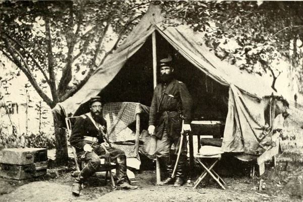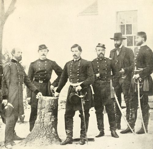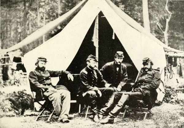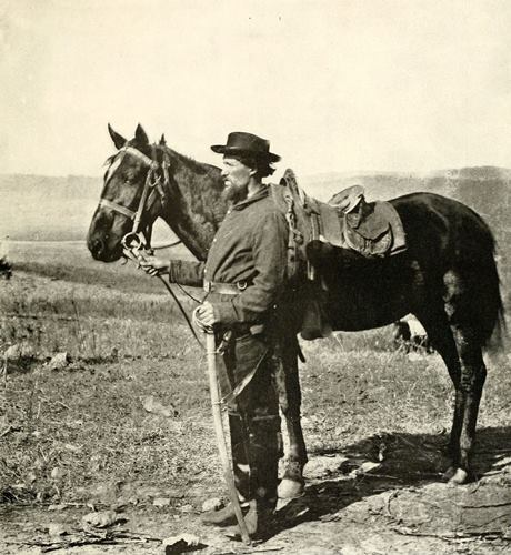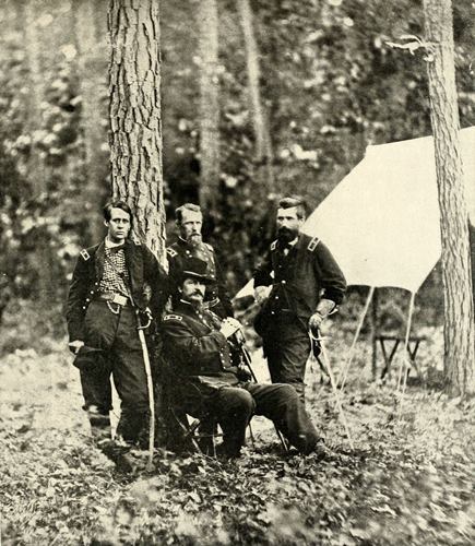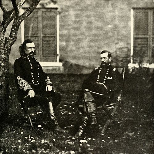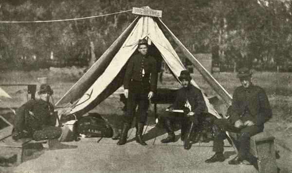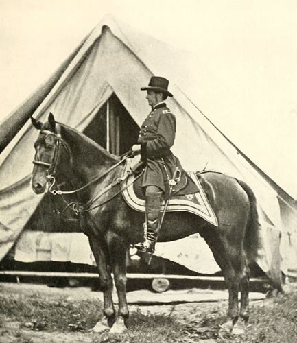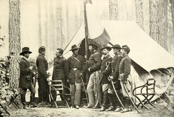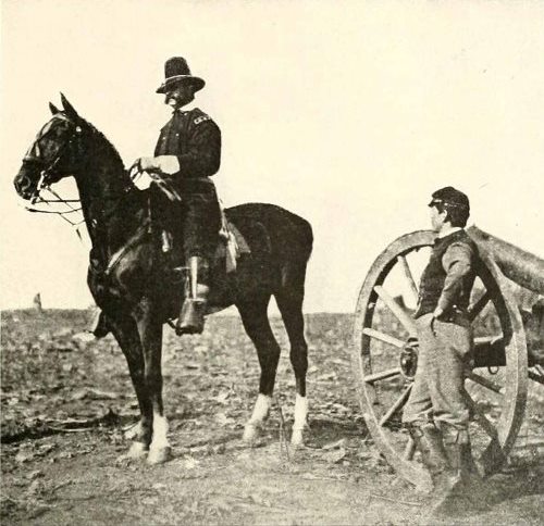 The man who planned the battle of Bull Run for the Northern Army was Brigadier-General Irvin McDowell, then in command of the forces before Washington. When assured that Patterson would hold Johnston in the Shenandoah, he undertook to advance with his raw and unorganized troops on Beauregard at Manassas. The plan for the battle which he adopted on the night of July 18th was, according to General Sherman, one of the best formed during the entire war. But it failed because, even before he began his attack, Johnston with a good part of his troops had already joined Beauregard at Manassas. After the defeat McDowell was placed in charge of the defenses of Washington on the Virginia side of the Potomac. This picture was taken the next year at General Robert E. Lee’s former home in Arlington.