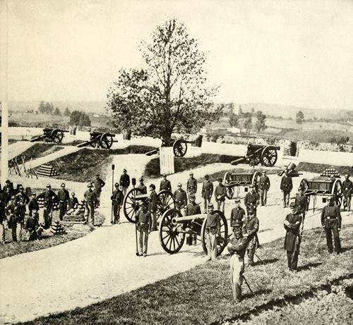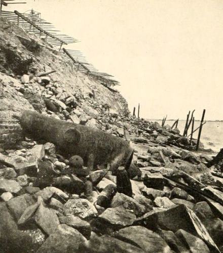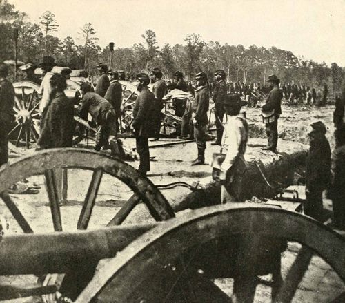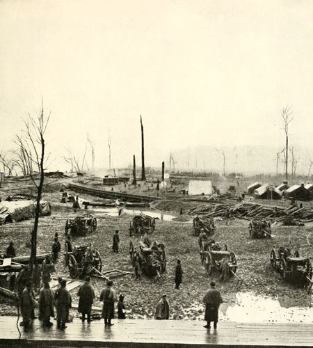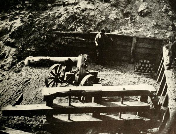 Never again to be used by brother against brother, these Confederate guns captured in the defenses about Richmond are parked near the wharves on the James River ready for shipment to the national arsenal at Washington, once more the capital of a united country. The reflection of these instruments of destruction on the peaceful surface of the canal is not more clear than was the purpose of the South to accept the issues of the war and to restore as far as in them lay the bases for an enduring prosperity. The same devotion which manned these guns so bravely and prolonged the contest as long as it was possible for human powers to endure, was now directed to the new problems which the cessation of hostilities had provided. The restored Union came with the years to possess for the South a significance to be measured only by the thankfulness that the outcome had been what it was and by the pride in the common traditions and common blood of the whole American people. These captured guns are a memory therefore, not of regret, but of recognition, gratitude, that the highest earthly tribunal settled all strife in 1865.