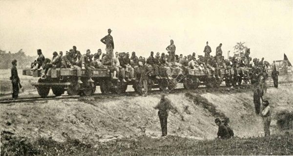 At three o’clock, while McDowell and his men were congratulating themselves on having won the battle, a faint cheering was heard from a Confederate army far across the hills. It grew louder and nearer, and presently the gray lines were seen marching gallantly back toward the scene of the battle from which they had been driven. The thrilling cry then passed through the Union ranks, “Johnston has come, Johnston has come!” and there was terror in the cry. They did not know that Johnston, with two-thirds of his army, had arrived the day before; but it was true that the remaining third, twenty-three hundred fresh troops, had reached Manassas at noon by rail, and after a forced march of three hours, under the command of Kirby Smith, had just united with the army of Beauregard. It was this that caused the cheering and determined Beauregard to make another attack on the Henry plateau.