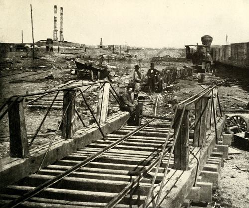The sad significance of these photographs is all too apparent. Not only the bank buildings were in ruins, but the financial system of the entire South. All available capital had been consumed by the demands of the war, and a system of paper currency had destroyed credit completely. Worse still was the demoralization of all industry. Through large areas of the South all mills and factories were reduced to ashes, and everywhere the industrial system was turned topsy-turvy. Truly the problem that confronted the South was stupendous.