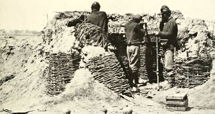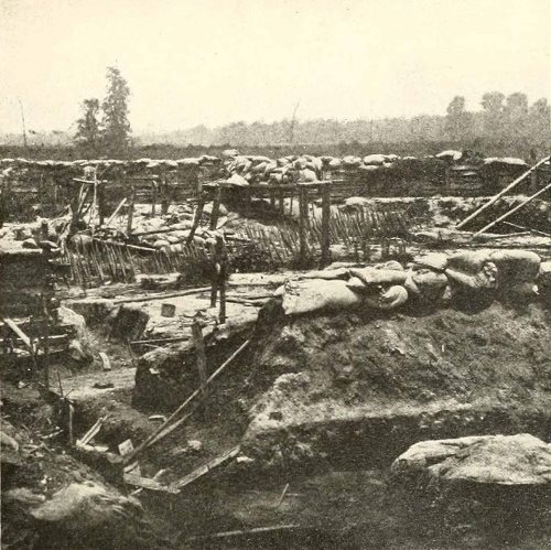 For nine months of ’64-’65 the musket-balls sang past these Federal picket posts, in advance of Federal Fort Sedgwick, called by the Confederates “Fort Hell.” Directly opposite was the Confederate Fort Mahone, which the Federals, returning the compliment, had dubbed “Fort Damnation.” Between the two lines, separated by only fifty yards, sallies and counter-sallies were continual occurrences after dark. In stealthy sorties one side or the other frequently captured the opposing pickets before alarm could be given. No night was without its special hazard. During the day the pastime here was sharp-shooting with muskets and rifled cannon.