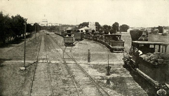 One of the proudest days of the nation—May 24, 1865—here lives again. The true greatness of the American people was not displayed till the close of the war. The citizen from the walks of humble life had during the contest become a veteran soldier, equal in courage and fighting capacity to the best drilled infantry of Marlborough, Frederick the Great, or Napoleon. But it remained to be seen whether he would return peacefully to the occupations of peace. European nations made dark predictions. “Would nearly a million men,” they asked, “one of the mightiest military organizations ever trained in war, quietly lay aside this resistless power and disappear into the unnoted walks of civil life?” Europe with its standing armies thought not. Europe was mistaken. The disbanded veterans lent the effectiveness of military order and discipline to the industrial and commercial development of the land they had come to love with an increased devotion. The pictures are of Sherman’s troops marching down Pennsylvania Avenue. The horsemen in the lead are General Francis P. Blair and his staff, and the infantry in flashing new uniforms are part of the Seventeenth Corps in the Army of Tennessee. Little over a year before, they had started with Sherman on his series of battles and flanking marches in the struggle for Atlanta. They had taken a conspicuous and important part in the battle of July 22d east of Atlanta, receiving and finally repulsing attacks in both front and rear. They had marched with Sherman to the sea and participated in the capture of Savannah. They had joined in the campaign through the Carolinas, part of the time leading the advance and tearing up many miles of railway track, and operating on the extreme right after the battle of Bentonville. After the negotiations for Johnston’s surrender were completed in April, they set out on the march for the last time with flying colors and martial music, to enter the memorable review at Washington in May, here preserved.
