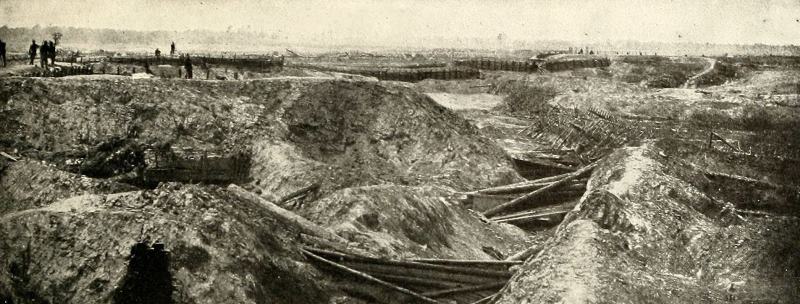 It is not improbable that Grant might have made more headway by leaving a sufficient part of his army in the trenches in front of Petersburg and by moving with a heavy force far to the west upon Lee’s communications; or, if it were determined to capture the place à main forte, by making a massed attack upon some point in the center after suitable mining operations had weakened Lee’s defenses and prepared for such an operation. But the end was to come with opening spring. To the far-sighted, this was no longer doubtful. The South must succumb to the greater material resources of the North, despite its courage and its sacrifices.—Colonel T. A. Dodge, U. S. A., in “A Bird’s-Eye View of Our Civil War.”