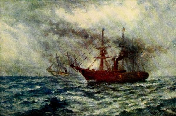 For the first time in the nation’s history the newly-elected President had entered the capital city by night and in secret, in the fear of the assassin’s plots. For the first time he had been inaugurated under a military guard. Then came the opening shots, and the ruined walls of the noble fort in Charleston harbor told the story of the beginnings of the fratricidal war. The fall of Sumter, on April 14, 1861, had aroused the North to the imminence of the crisis, revealing the danger that threatened the Union and calling forth a determination to preserve it. The same event had unified the South; four additional States cast their lot with the seven which had already seceded from the Union. Virginia, the Old Dominion, the first born of the sisterhood of States, swung into the secession column but three days after the fall of Sumter; the next day, April 18th, she seized the arsenal at Harper’s Ferry and on the 20th the great navy-yard at Norfolk.